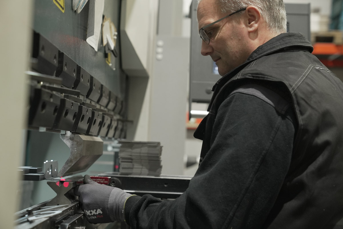 Onze kantbankoperator is de man die het plaatmateriaal buigt met behulp van een, je raadt het al, kantbank. Door zijn inspanningen komen de kenmerkende vormen van de kachel tevoorschijn: van 2D naar 3D.